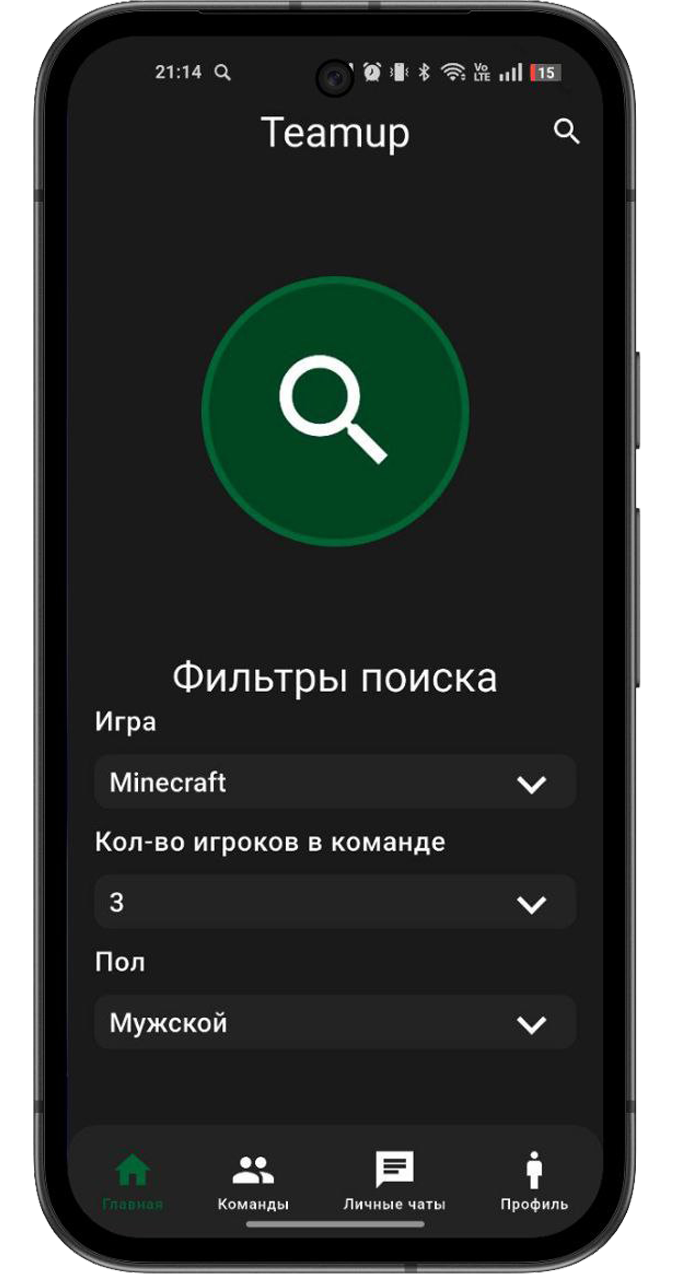 Teamup - это приложение для быстрого поиска тиммейтов в команду для игры, просто по нажатию одной кнопки.